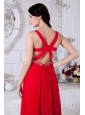 Sexy Red Prom / Evening Dress Backless Chiffon Beading
