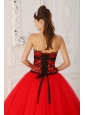 Home >  Quinceanera Dresses >  Cute Quinceanera Dresses > Sexy Red Quinceanera Dress Strapless Tulle and Zebra Beading A-line / Princess