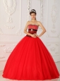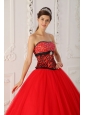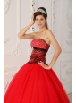 Sexy Red Quinceanera Dress Strapless Tulle and Zebra Beading A-line / Princess