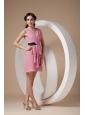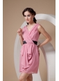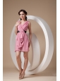 Home >  Special Occasion Dresses >  Mother of the Bride Dresses > Sexy Rose Pink Mother of the Bride Dress Column / Sheath V-neck Chiffon Ruch Mini-length