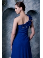 Sexy Royal Blue Column One Shoulder Prom Dress Hand Made Flower and Beading Chiffon Brush Train