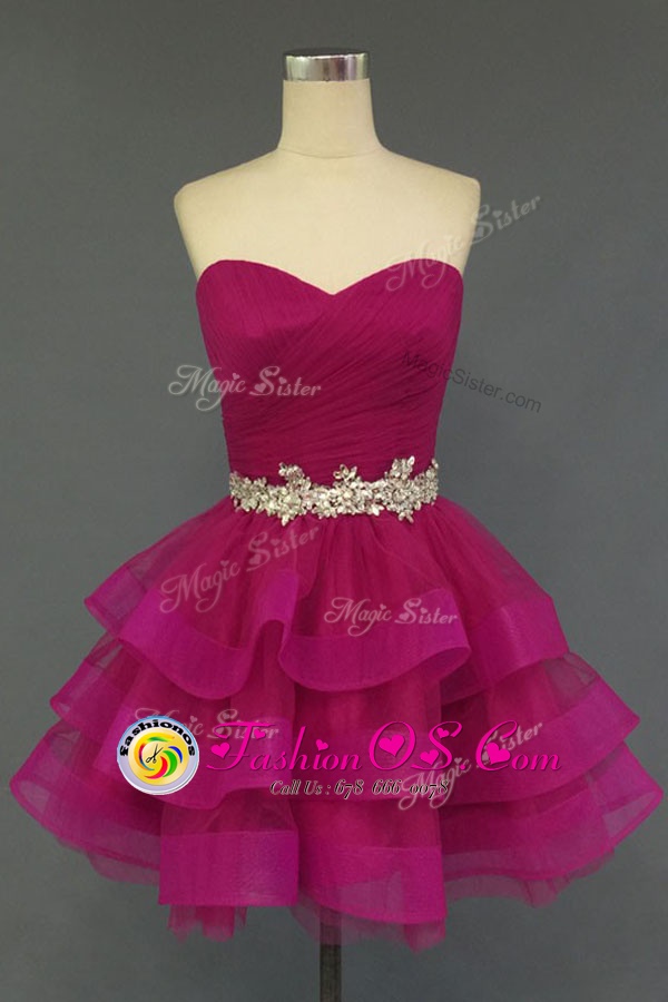 Home >  Prom Dresses >  Perfect Prom Dresses > Sexy Ruffled Knee Length A-line Sleeveless Fuchsia Lace Up