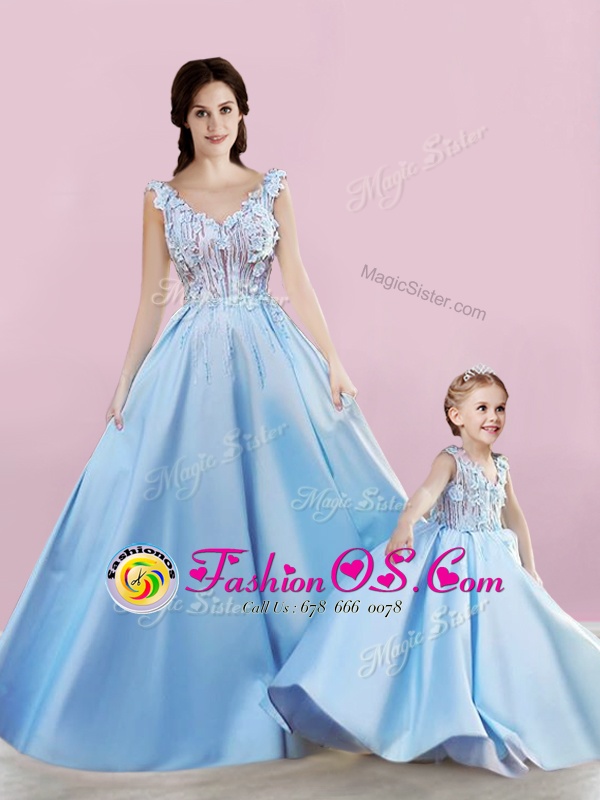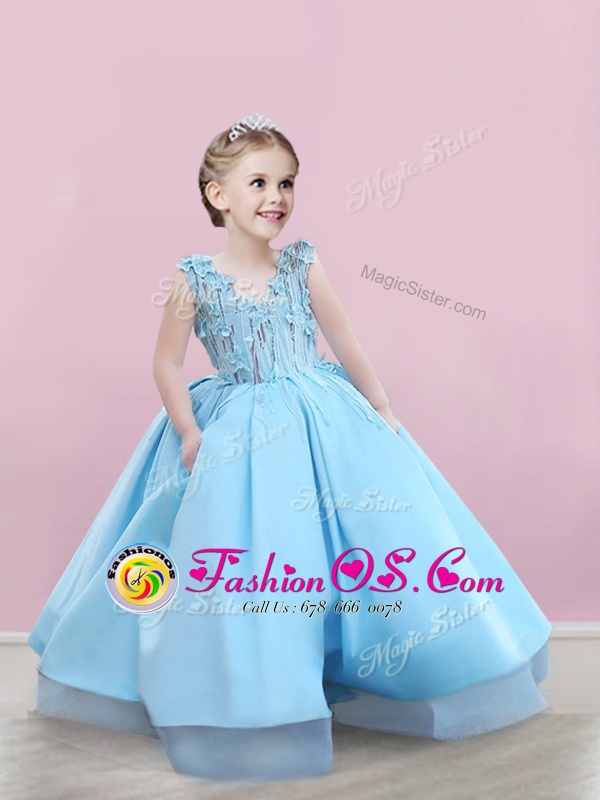 Sexy Satin Sleeveless Floor Length Toddler Flower Girl Dress and Appliques