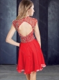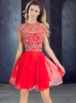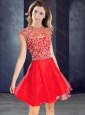 Sexy Scoop Beaded Red Short Prom Dress with Cap Sleeves