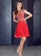 Home >  Evening Dresses > Sexy Scoop Beaded Red Short Prom Dress with Cap Sleeves