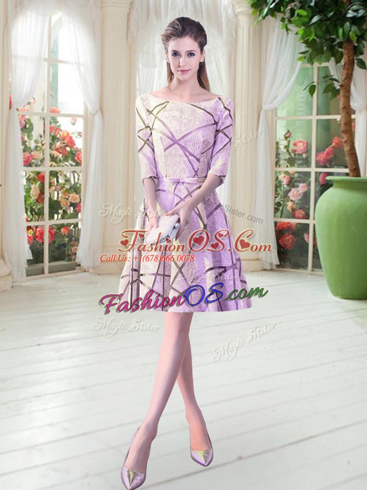Sexy Scoop Half Sleeves Lace Up Ruching Prom Dresses in Lilac