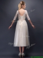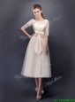 Sexy See Through Scoop Half Sleeves Champagne Prom Dresses  with Bowknot