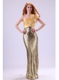 Home >  Prom Dresses >  Elegant Prom Dresses > Sexy Sequins Column Strapless Floor-length Yellow Prom Dress with Ruching