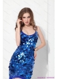 Sexy Sequins Spaghetti Straps 2015 Prom Dresses in Blue