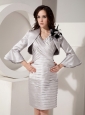 Sexy Silver Mother Of The Bride Dress Column V-neck Taffeta Pleats Knee-length