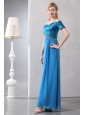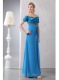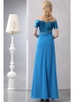 Sexy Sky Blue Column Off The Shoulder Beading Mother Of The Bride Dress Ankle-length Taffeta and Chiffon