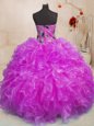Sexy Sleeveless Zipper Floor Length Beading and Appliques and Ruffles Ball Gown Prom Dress
