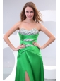 Home >  Prom Dresses >  Fashionable Prom Dresses > Sexy Sweetheart Spring Green Elastic Woven Satin Brush Train Beading and Paillette Prom Dress with Column