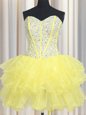 Sexy Three Piece Yellow Sweetheart Lace Up Beading and Ruffles Sweet 16 Quinceanera Dress Sleeveless