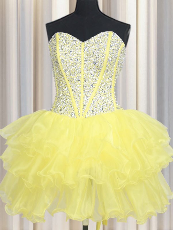 Home >  Quinceanera Dresses >  Detachable Quinceanera Skirts > Sexy Three Piece Yellow Sweetheart Lace Up Beading and Ruffles Sweet 16 Quinceanera Dress Sleeveless