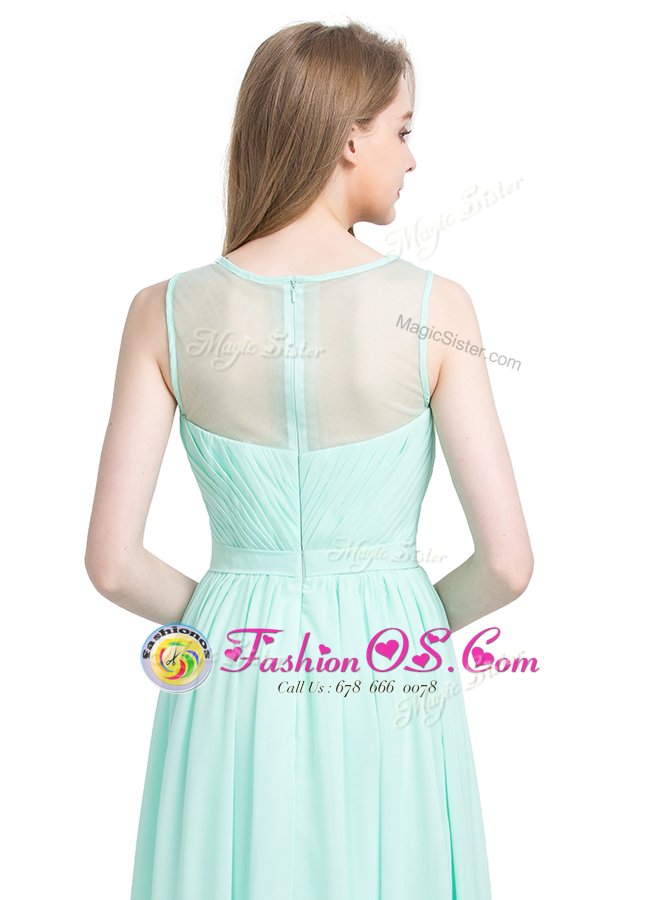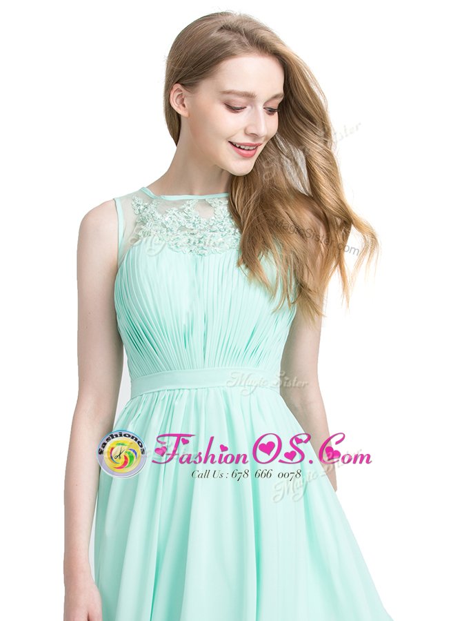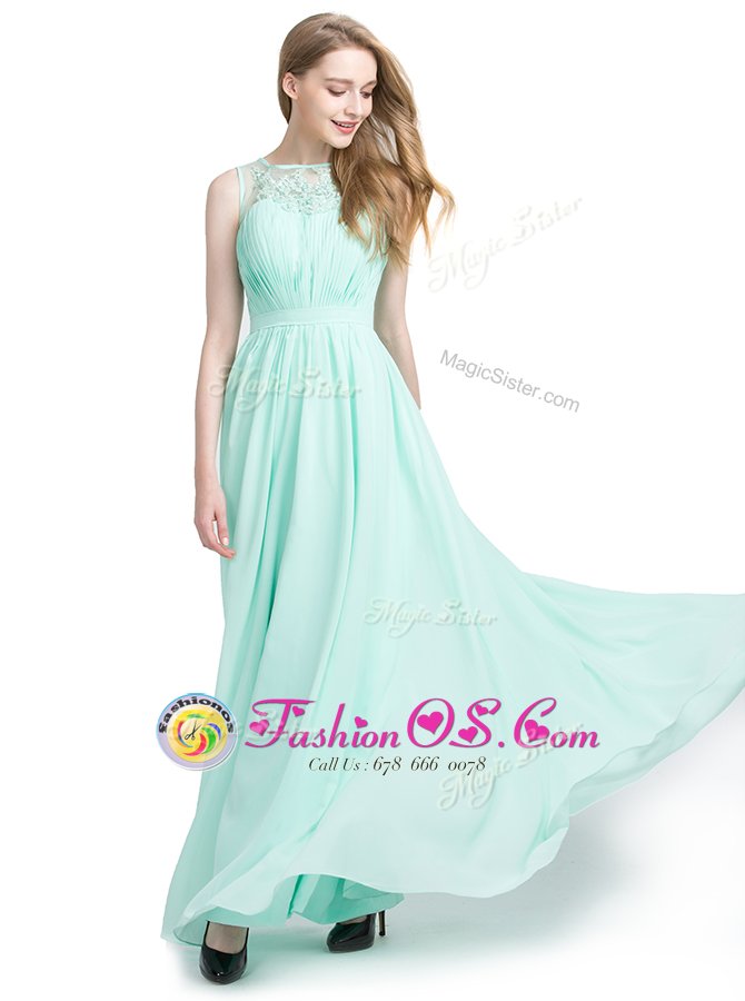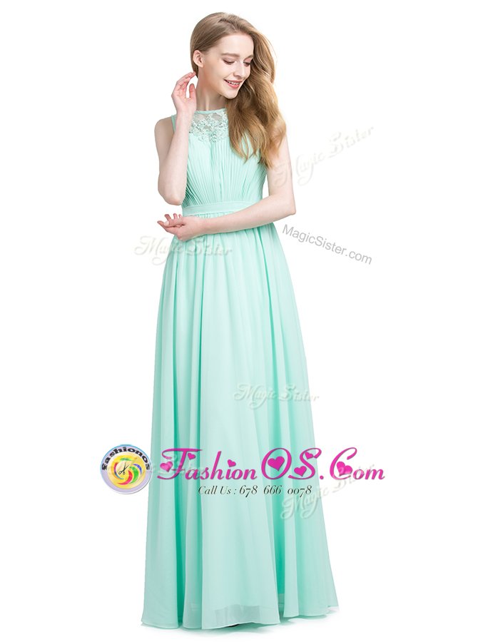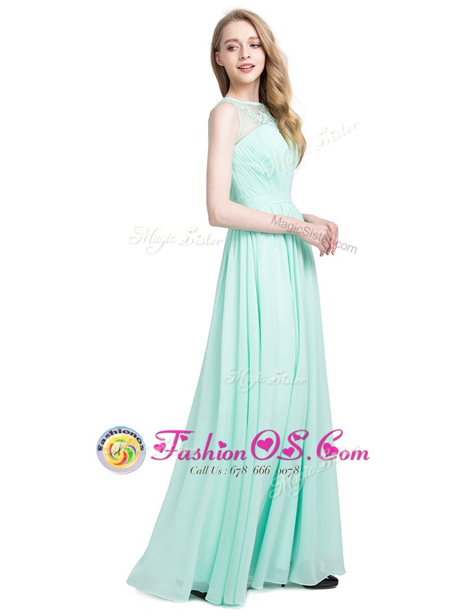 Sexy Turquoise Sleeveless Appliques Floor Length Prom Dress