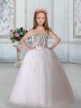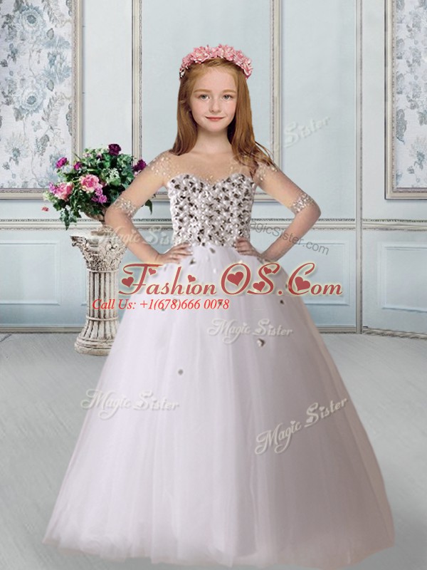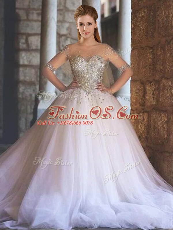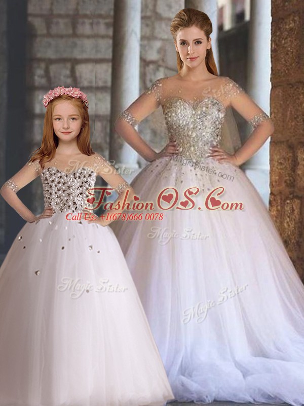 Sexy White Tulle Lace Up Quinceanera Dresses Half Sleeves Floor Length Beading