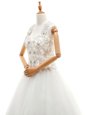 Sexy With Train Lace Up Wedding Dress White and In for Wedding Party with Beading and Lace Brush Train