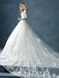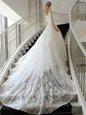 Home >  Wedding Dresses >  Popular Wedding Dresses > Shining Ball Gowns Wedding Dresses White Scoop Tulle Half Sleeves Floor Length Lace Up
