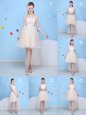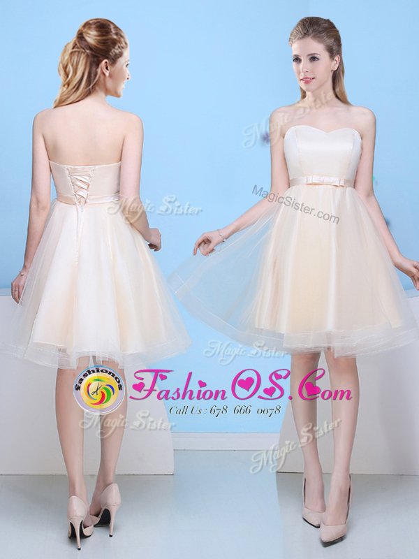 Shining Champagne Sleeveless Knee Length Bowknot Lace Up Bridesmaid Dresses