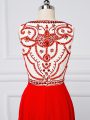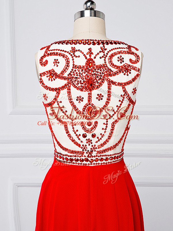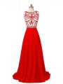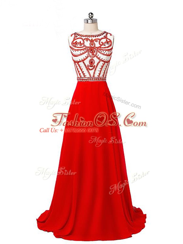 Shining Chiffon Sleeveless Dress for Prom Sweep Train and Beading