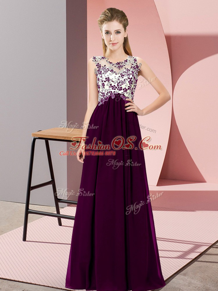 Home >  Bridesmaid Dresses >  Perfect Bridesmaid Dresses > Shining Dark Purple Sleeveless Chiffon Zipper Bridesmaid Dresses for Wedding Party
