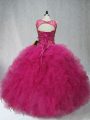 Shining Fuchsia Sleeveless Tulle Lace Up Sweet 16 Dresses for Sweet 16 and Quinceanera