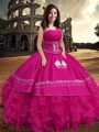 Home >  Quinceanera Dresses >  Puffy Quinceanera Dresses > Shining Hot Pink Strapless Neckline Embroidery and Ruffled Layers Quince Ball Gowns Sleeveless Zipper