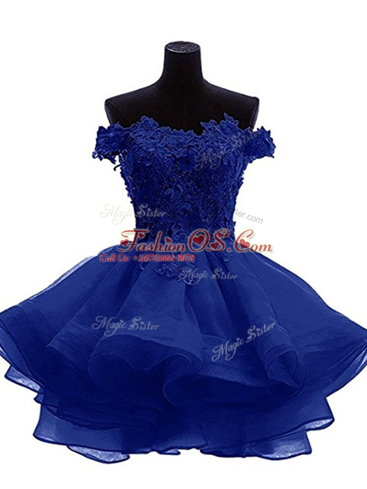 Shining Mini Length A-line Sleeveless Royal Blue Zipper