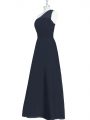 Home >  Prom Dresses >  Plus Size Prom Dresses > Shining One Shoulder Sleeveless Homecoming Dress Floor Length Ruching Black Chiffon
