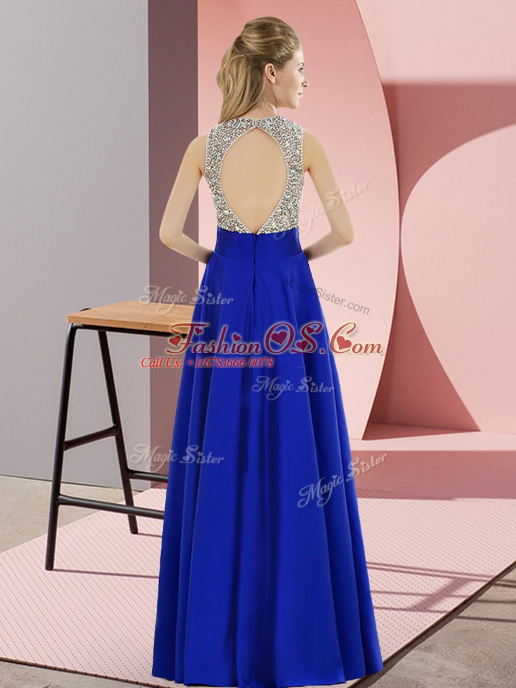 Shining Royal Blue Sleeveless Elastic Woven Satin Backless Prom Evening Gown for Prom and Party