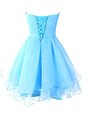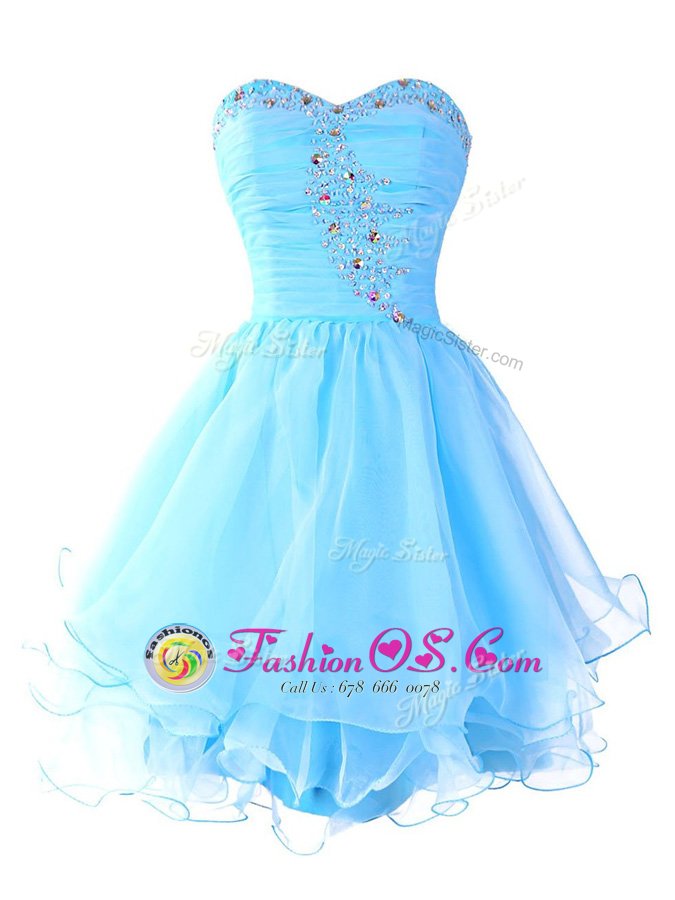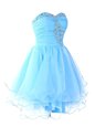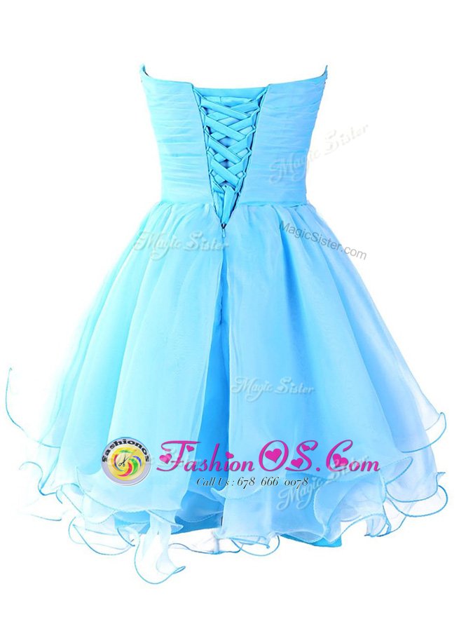 Shining Ruffled A-line Prom Gown Aqua Blue Sweetheart Organza Sleeveless Mini Length Lace Up