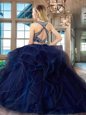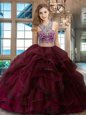 Shining Scoop Burgundy Sleeveless Tulle Brush Train Criss Cross Sweet 16 Dresses for Military Ball and Sweet 16 and Quinceanera