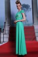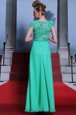 Shining Scoop Chiffon Cap Sleeves Floor Length and Appliques