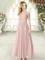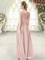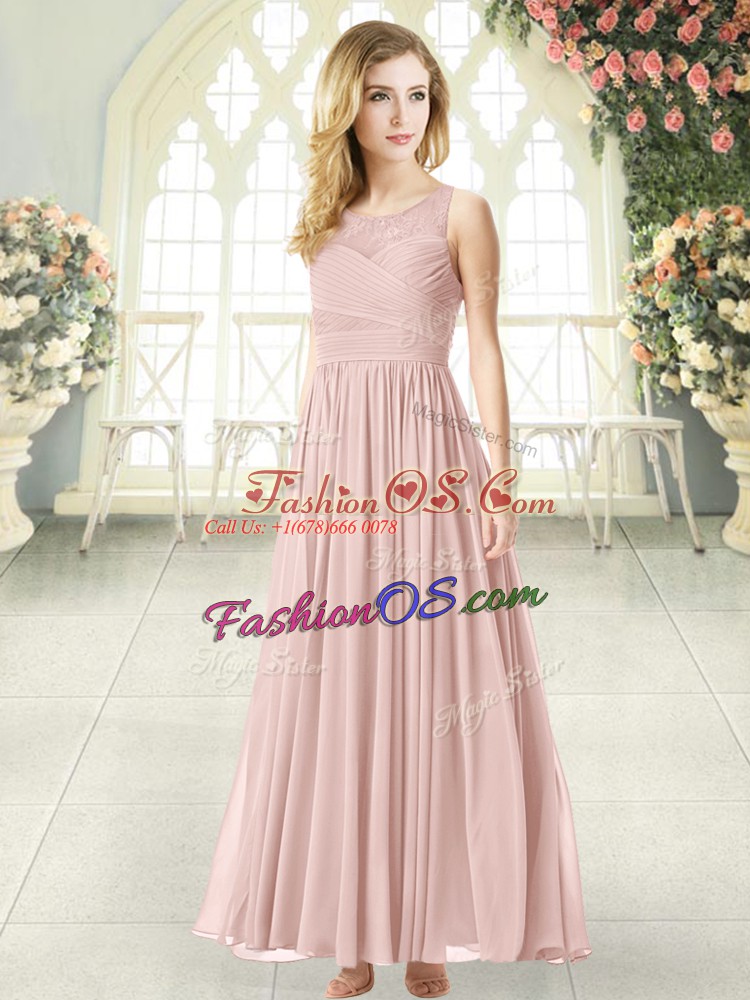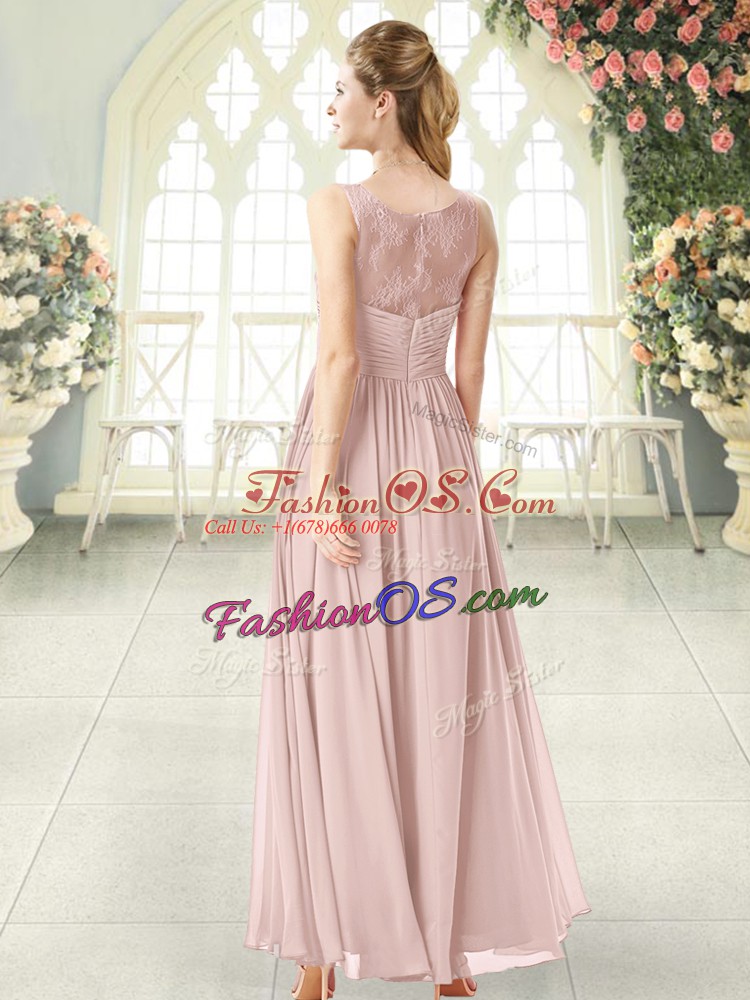 Shining Scoop Sleeveless Homecoming Dress Ankle Length Lace Pink Chiffon