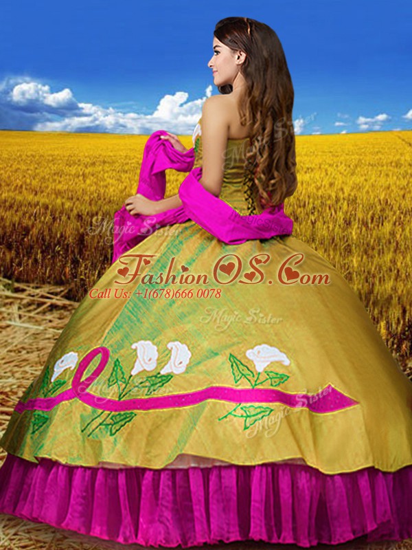 Shining Sleeveless Taffeta Floor Length Lace Up Ball Gown Prom Dress in Multi-color with Embroidery