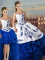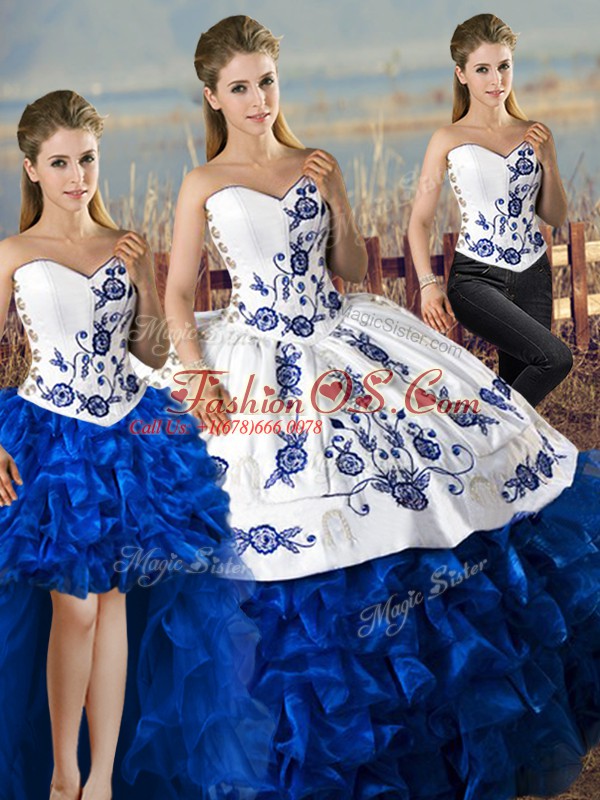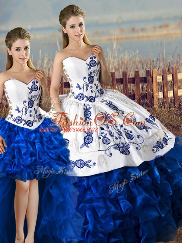 Home >  Quinceanera Dresses >  Detachable Quinceanera Skirts > Shining Sweetheart Sleeveless Organza Sweet 16 Dresses Embroidery and Ruffles Lace Up
