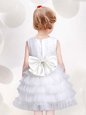 Shining Tulle Scoop Sleeveless Zipper Ruffled Layers and Sequins and Bowknot Flower Girl Dresses in White
