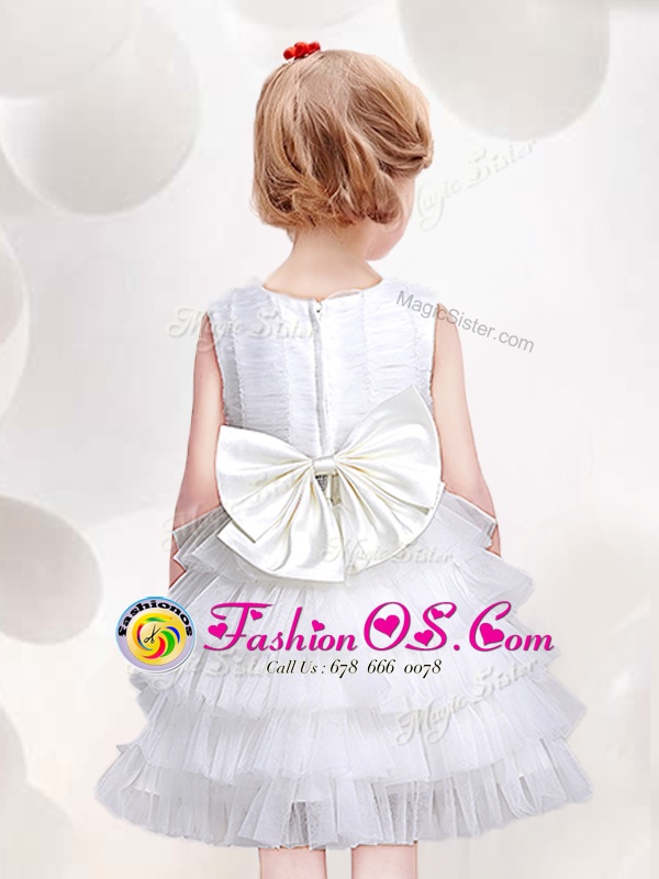 Home >  Special Occasion Dresses >  Cheap Flower Girl Dresses > Shining Tulle Scoop Sleeveless Zipper Ruffled Layers and Sequins and Bowknot Flower Girl Dresses in White