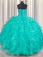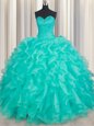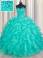 Home >  Quinceanera Dresses >  Sweet 16 Dresses > Shining Turquoise Organza Lace Up Quinceanera Gowns Sleeveless Floor Length Beading and Ruffles