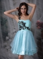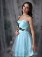 Short Aqua Blue A-line One Shoulder Appliques Dama Dresses