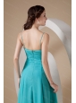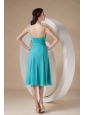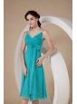 This turquoise prom dress embellished with an elegant sweetheart neckline, exquisite ruchings are all over the skirt. The spaghetti straps and the chic bowknot in the bust area make the dress so glamorous that will attract the public. The soft and stunning chiffon skiry flows freely to knees to show the beauty of your legs. A zipper up completes this wonderful design.