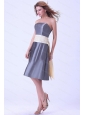 Short Grey Sash Taffeta Strapless Dama Dresses On Sale