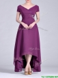 Home >  Special Occasion Dresses >  Mother of the Bride Dresses > Short High-low Chiffon Dark Purple Short Sleeves Mother of the Bride Dress with V Neck