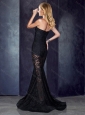 Home >  Prom Dresses >  Elegant Prom Dresses > Short Inside Long Outside Mermaid Black Prom Dress in Lace