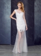 Home >  Evening Dresses > Short Inside Long Outside White Prom Dress with Beading and Appliques