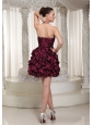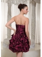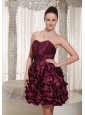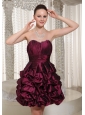 Short Lace-up Burgundy 2013 Prom Dress With Strapless Pich-ups