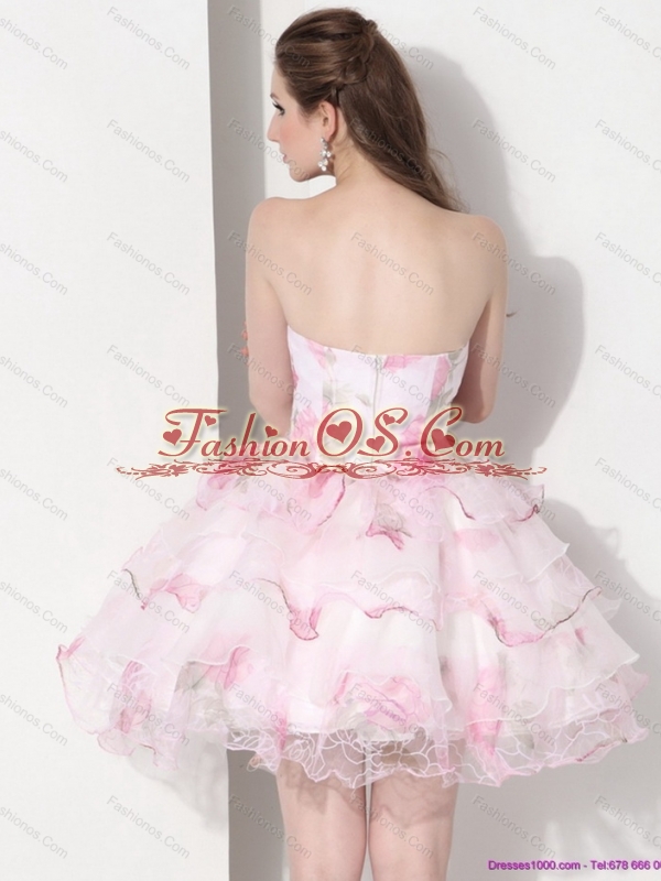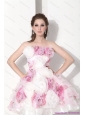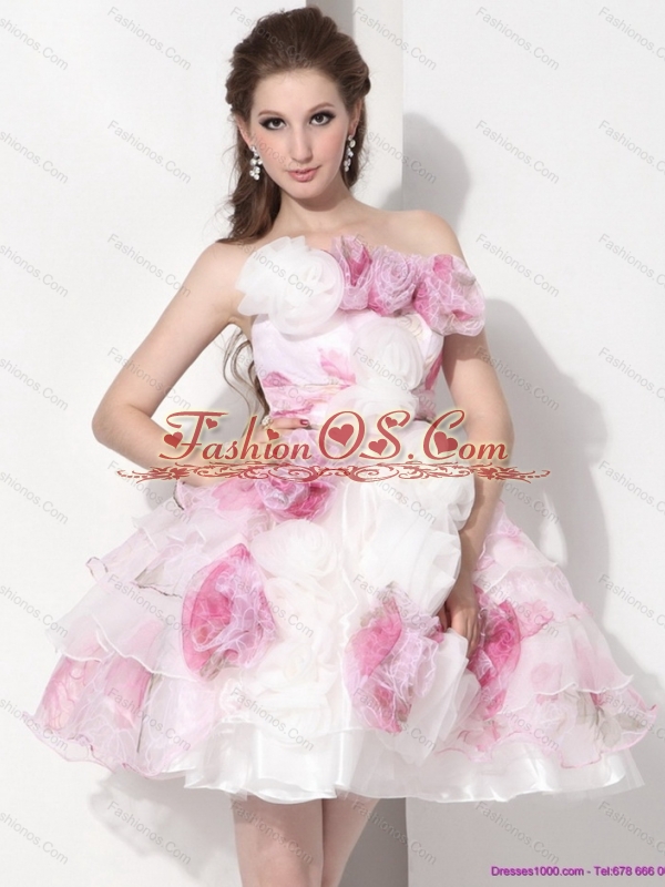 Short Multi Color Strapless Wedding Dresses with Hand Made Flower