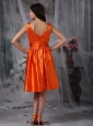If you're a fan of the fancier, finer things in life-this might just be the dress for you. This orange red knee-length dress features a low V-neckline and a waist band to thoroughly expose your curves. Ruched bodice upgrades your tastes and beautifies the dress. The hidden zipper up back hold the dress in place.