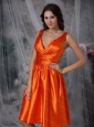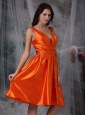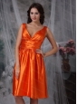 Home >  Special Occasion Dresses >  Dama Dresses for Quinceanera > Short Orange Red Column V-neckRuch Dama Dresses for Quinceanera 2013